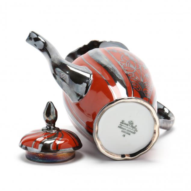 (13) pieces including: demitasse pot (6.5 in.); sugar bowl with cover; creamer; (6) cups; and (4) saucers. Each marked, circa 1920.