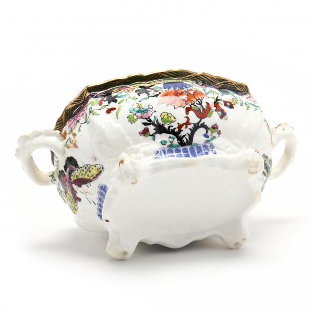 Private Collection, Charlotte, North Carolina Platters with paint loss; tureen lid with hairline crack, and chip and staining to underplate.