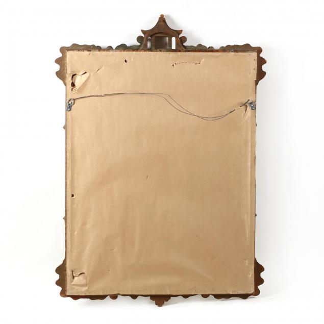 Mid 20th century, wood and composition, asymmetrical frame featuring pagoda at finial.