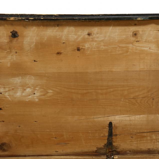 19th century, pine, with original painted decoration, paneled top with floral sprays, sides with bail handles, front with applied half-turned columns, with repeating painted floral sprays, monograms, dated 1840, on flush base.