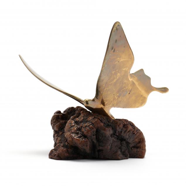 Late 20th century, cast and polished brass mounted to a burlwood base, signed "W. Wilson"