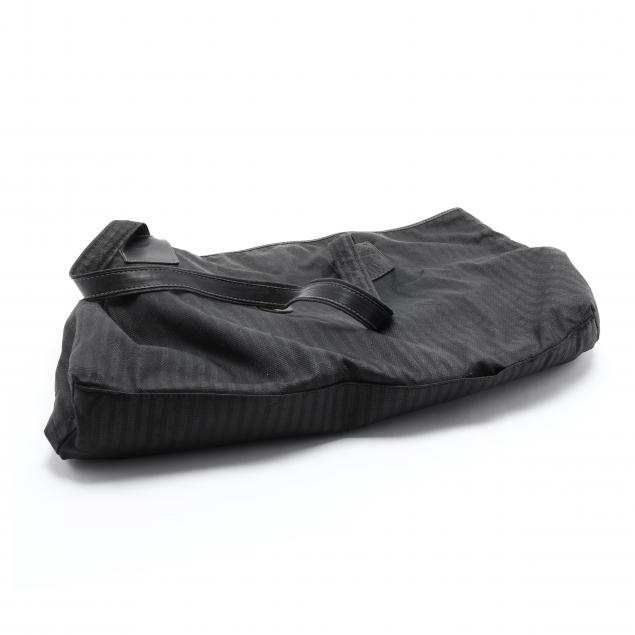 The first is a drawstring small bucket bag, composed of woven black leather in the style of Bottega Veneta, fabric lined with a leather patch "Bloomingdale's" (very good pre-owned condition; slight not unpleasant scent) (9 x 12 x 6 in.); a Fendi made in Italy, constructed with a water-resistant exterior, leather lined interior, Fendi metal plaque (leather peeling in two areas; professional stitched strap repair as well as area of strap separation; fair condition); the third is a Prada, made in Italy tote, soft brown calfskin with exterior stitching, fabric lined interior has the Prada metal plaque (11 x 15 x 3 in.) (wear to leather and some discoloration at the front) with dust bag.