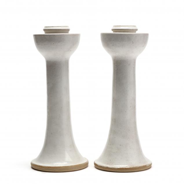 Ben Owen III, NC Pottery White Glazed Candlesticks