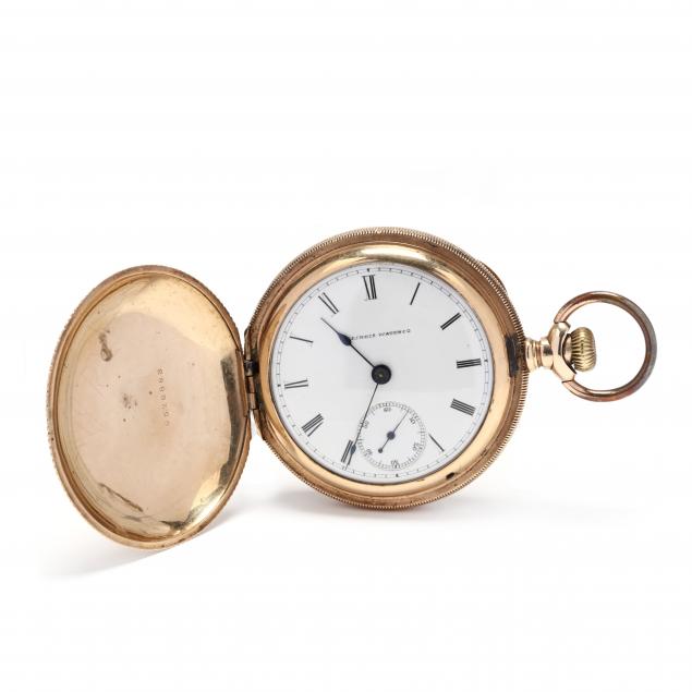 Circa 1886, stem wind and lever set, movement 621278, eleven jewels, the signed white dial with black Roman numeral hour markers and outer minute register, with subsidiary dial at 6:00 hour and with blued steel spade hands, the hinged Keystone watch case with engraved detailing, signed and numbered 6576663 and curvette so numbered.