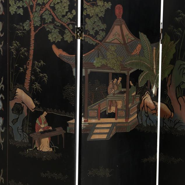 Vintage Chinese Carved Lacquer Four Panel Floor Screen