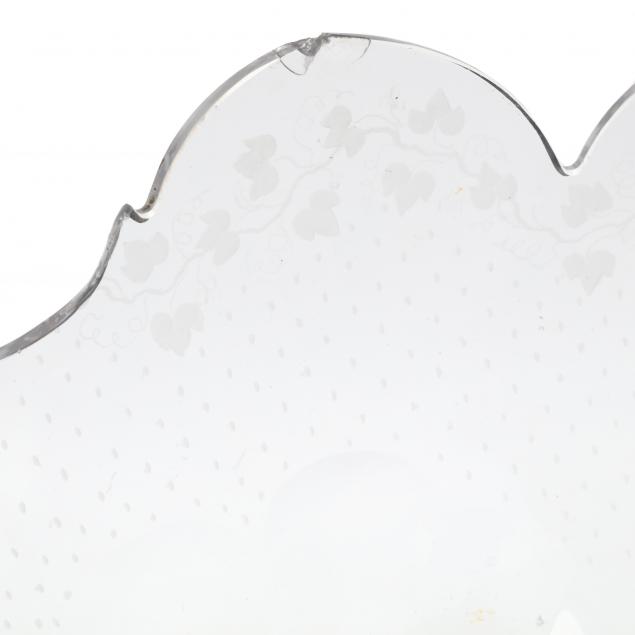 Private Collection, Charlotte, North Carolina Large break and loss to one end of scalloped glass bowl; other smaller rim chips; some gilding loss to stand.