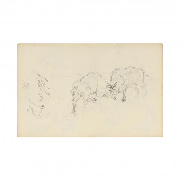 The double-sided drawings are typical of sheets from Toulouse-Lautrec's notebooks of circa 1878-1882, many of which are illustrated and documented in M. G. Dortu's catalogue raisonné. The study of the bulls are similar to one documented and illustrated in Dortu, D. 2.317, and dated to 1881 (however the sheet sizes do not align).