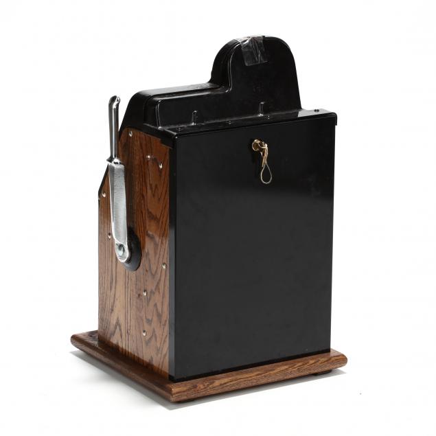 1950s, in black paint, with applied gold painted nude figures and nuggets, on wood base, with keys.