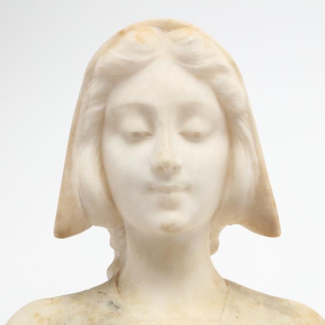 Circa 1890, carved marble bust signed en verso set on an alabaster plinth.