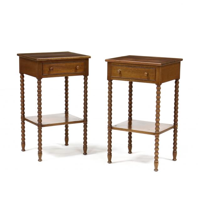 Mid 20th century, cockbeaded drawer, with turned supports, lower shelf, on turned legs, labeled.