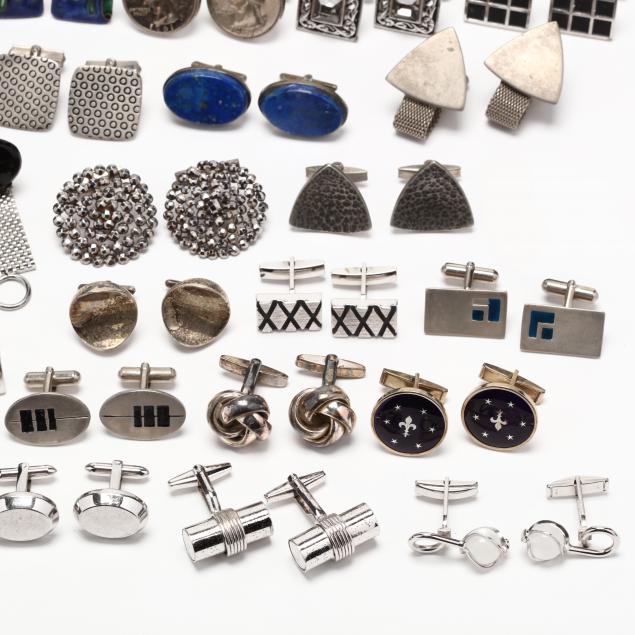 To include: 16 silver cufflinks (either stamped 925/STERLING or tested silver) and 29 costume cufflinks.