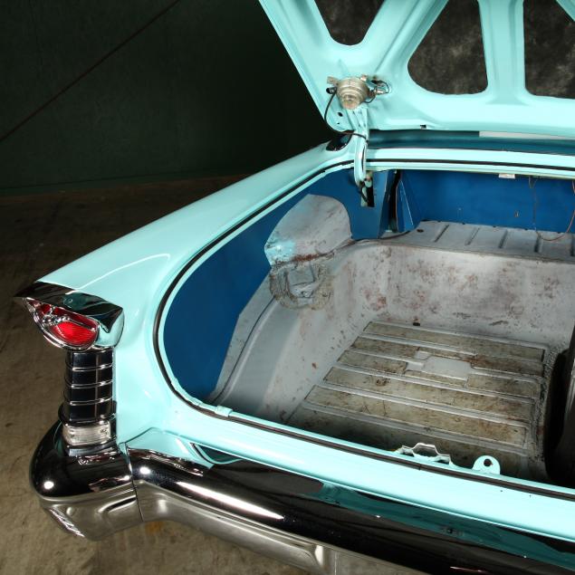 with a 371-cu.in. Rocket V8 equipped with the J2 3x2v package producing 300 horsepower, Hydra-Matic transmission, power steering and brakes, Autronic eye auto headlight dimming option, Cadet visor with prism, and Wonderbar Radio. Factory A/C is included but currently not installed in the car. This car is fully optioned after restoration. During restoration the J2 package was added correctly. The original intake and carburetor is included with the car.