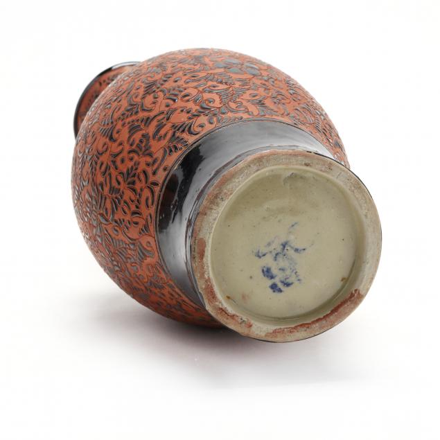 Mid 20th century, Vietnam, incised and glaze decorated, including two vases and a lidded ginger jar, marked.