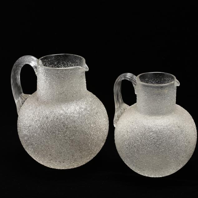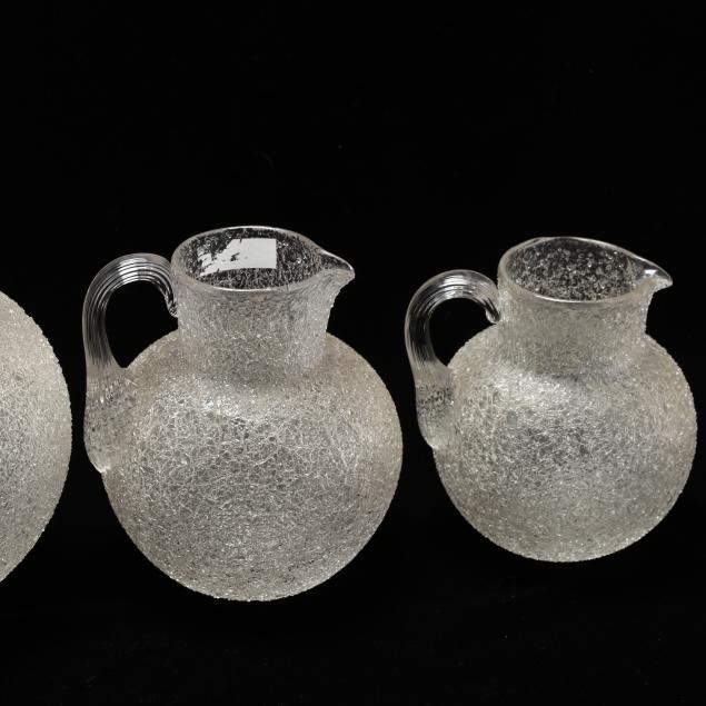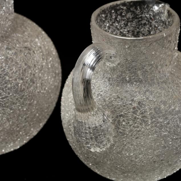 19th century, likely Sandwich glass, each with applied ribbed handles, polished pontils, unmarked.