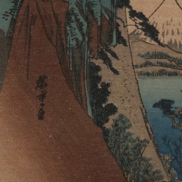 20th century, two reproductions of famous prints by Utagawa Hiroshige (Japanese, 1797-1858), attractively framed with silk mats, not examined outside of the frame.