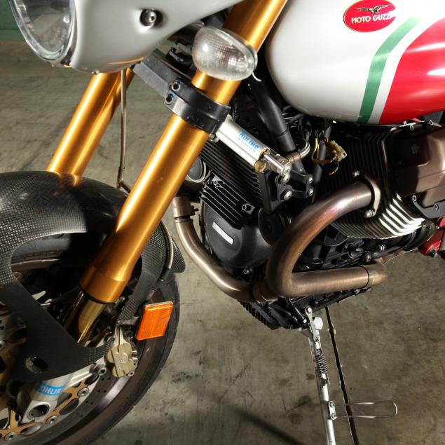 with a 1,064cc air-cooled V-twin engine producing 91 horsepower and six-speed transmission. With Öhlins forks, shock and steering dampener, Brembo Gold Series brakes, an optional $2,000 titanium exhaust, alloy wheels, excellent control levers. Upside-down forks and adjustable Sachs monoshock work well with the venerable shaft drive system.
