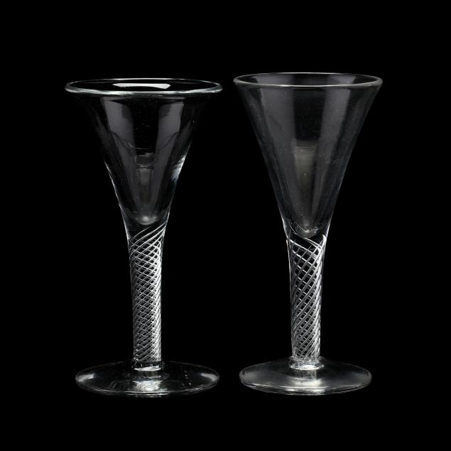 Mid 20th century, blown clear glass with airtwist stems, unmarked.