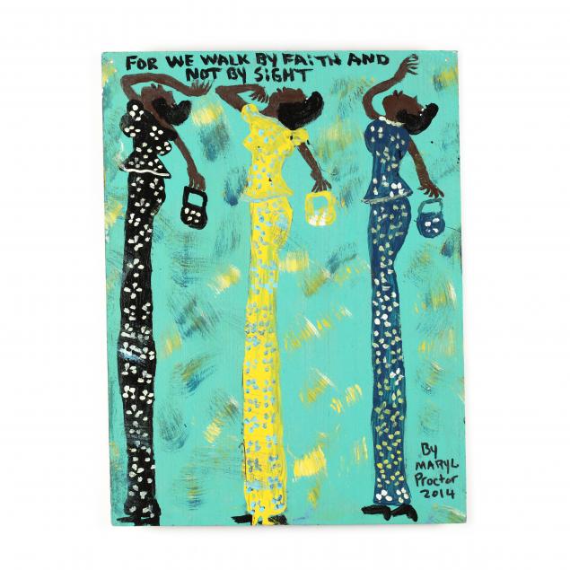 Acrylic on panel, 2014, signed and dated lower right, titled at top, with her message to verso, unframed.