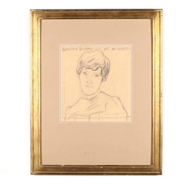 Toning and very minor soft creasing to sheet; puncture to sheet at proper left of sitter's head; minor rubbing to frame; lacking glass.