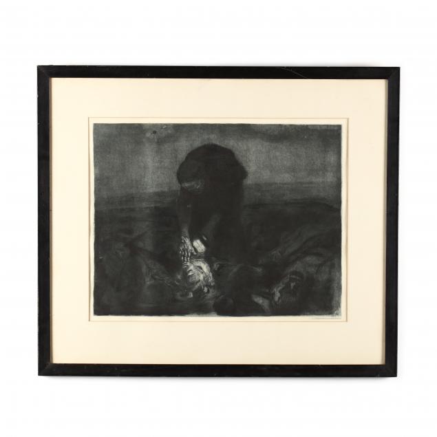 Peasants' War series, published 1921 or after, with Originalradierung von Kaethe Kollwitz printed at lower right and A.V.D. BECKE/MUENCHEN 22 blindstamp, matted and framed.