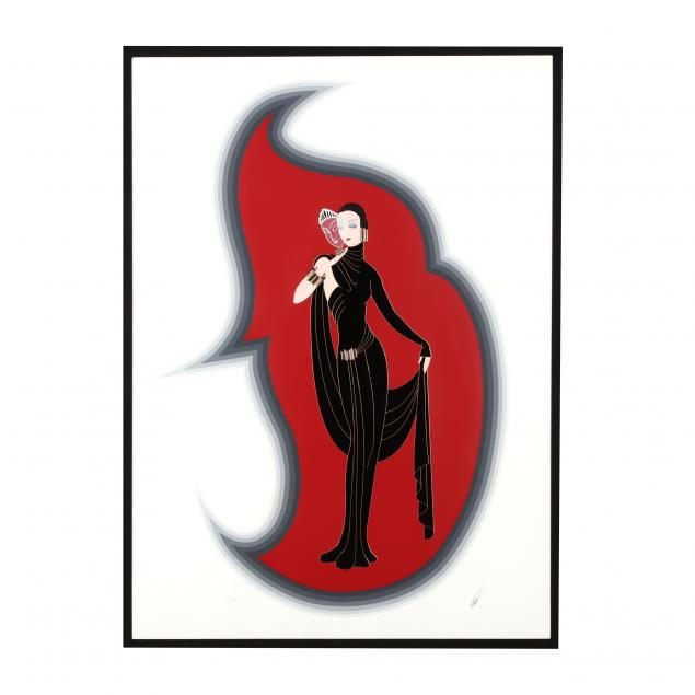 Embossed screenprint in colors, with gold signature stamp at lower right, marked as artist's proof and numbered AP 10/60 at lower right, presented in silvertone frame with black matting.