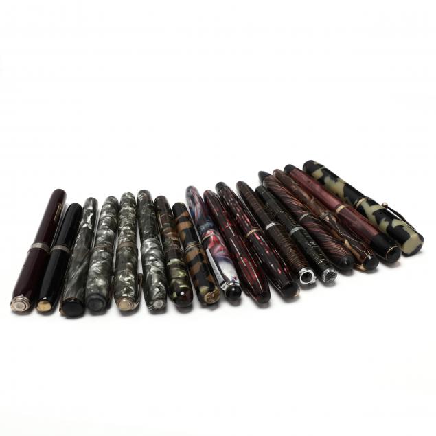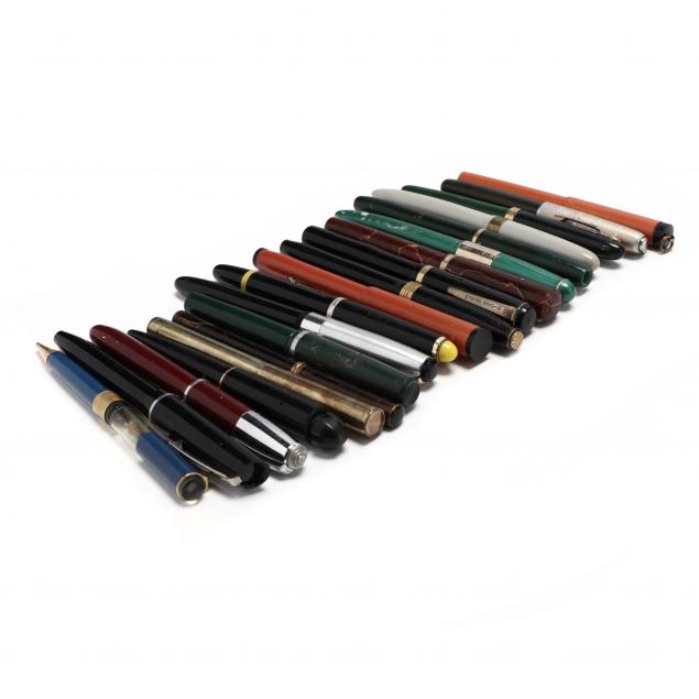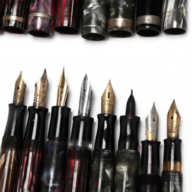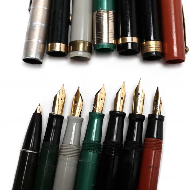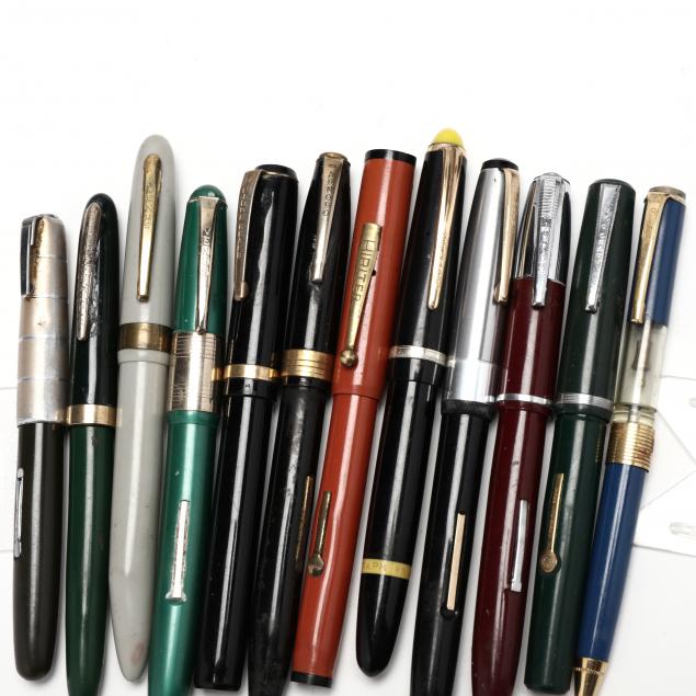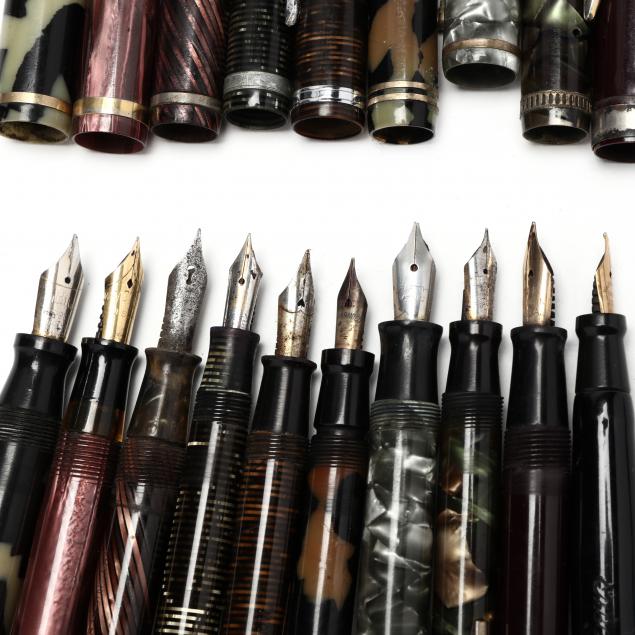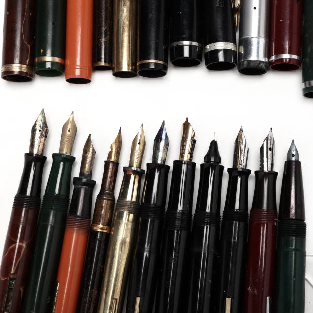 Including makers Kohinoor, Watermans, Uni-Flow, Eversharp, Universal, Hiriter, Belmont, Nidor Graph, Eagle, Venus, Conklin, Arnold, Shaeffers, Efaber, Wearever, Everlast, Austria, Inkograph, Osmiroid and others, some with 14k nibs.