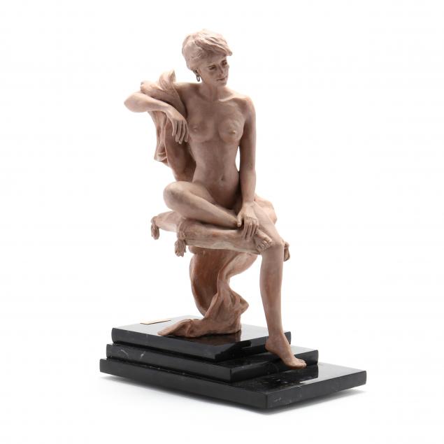 Terra cotta set on a black marble stepped plinth with artist's plaque, a signed hardback edition of Heath King's, "My Wonderful World of Sculpture" is included in the lot.
