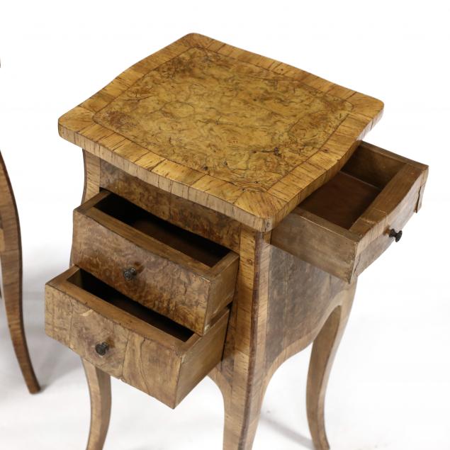 Mid 20th century, shaped banded top, thef front with two drawers, the right side with single upper drawer, case with banded edges, raised on cabriole legs, labeled "Made in Italy".