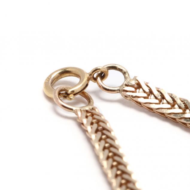 The 1881 $20 Liberty Head gold coin within a gold bezel testing 14KT and suspended from a gold wheat chain stamped 575.