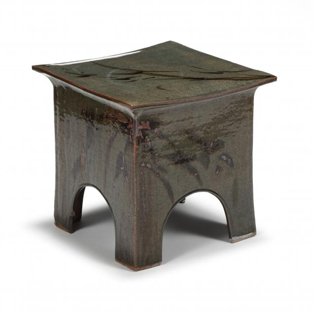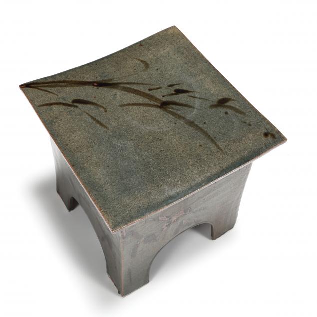 A sturdy form for use as a side table or garden seat, these pieces have withstood many NC outdoor summers and winters.