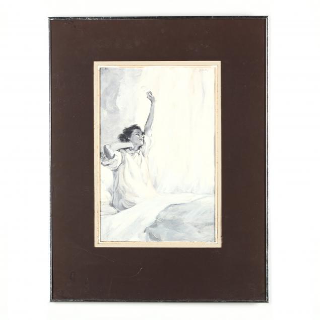 Casein on board, signed top right, matted and framed. A moment in time captured in an achromatic palette. Also included is a photo of a model likely taken by Mr. Neiser and used as photo reference for the gown.