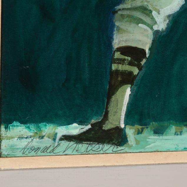 Casein on board, signed lower left, matted and framed; likely a commissioned piece for a sports magazine.