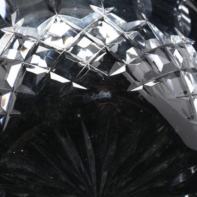 To include three marked Waterford pieces: Clock (HOA 2.75 in.), Ring Dish (2.75 in.), and "Lismore" Serving Bowl (4 x 8.75 in.); also (1) small ashtray marked Belfast (2 in.).