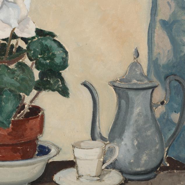 Oil on canvasboard. unsigned on recto, but stamped on the verso: "Estate of the Artist: Florence Harris Von Schlegell / Chicago, Ill 1894-1976 Pinehurst, NC", framed.