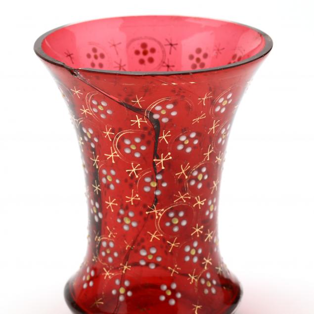 19th century, hourglass-shaped with gilt and enamel decoration, unmarked.