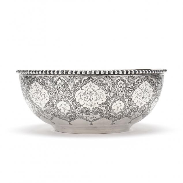 Early 20th century, hallmarks to underside, hand-worked with Persian motifs to rim and applied beaded edge.