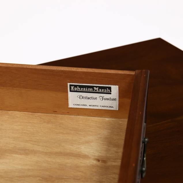 Mid 20th century, rectangular top with molded edge, case with ten graduated cockbeaded drawers, on ogee bracket feet, labeled.