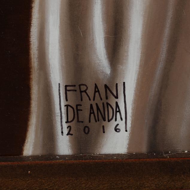 Oil on canvas, signed "Fran De Anda" and dated 2016 at lower left, presented in a gilt wood frame.