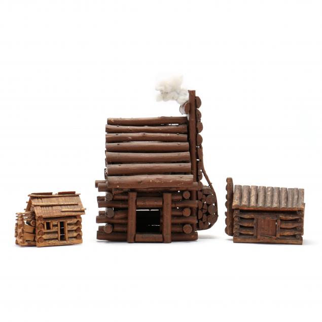 From the Personal Collection of Bob Timberlake, Lexington, North Carolina The smallest cabin has parts missing from the roof; all with primitive construction.