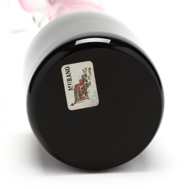 Attributed to the Seguso family, cased pink glass figures mounted to a black glass pedestal, unmarked.