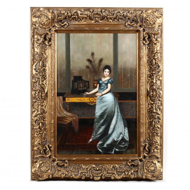 Contemporary Continental School, Painting of a Young Woman in an Interior