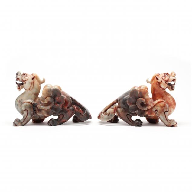 One lion with a break and loss to one tooth; the other lion with a break and loss to one toe on back foot.