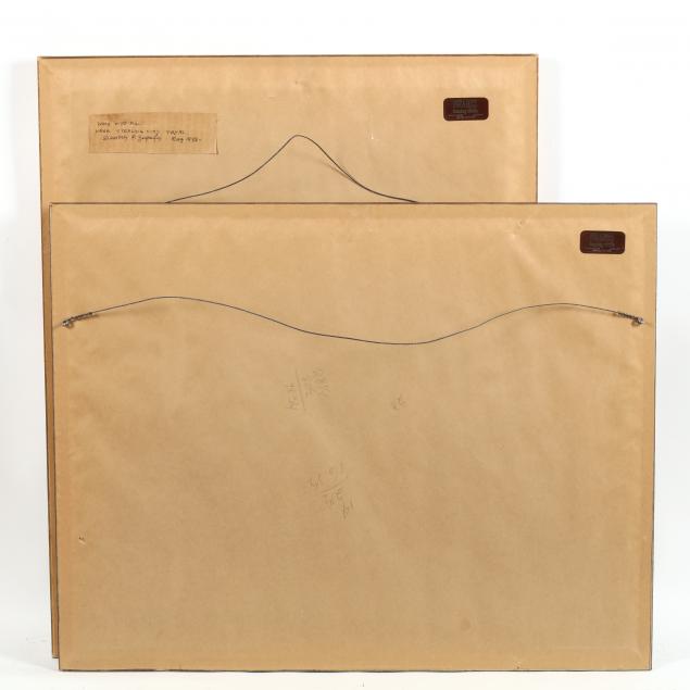 Watercolor and whitening on paper, each signed and dated, with location description for each site, matted and framed under glass.