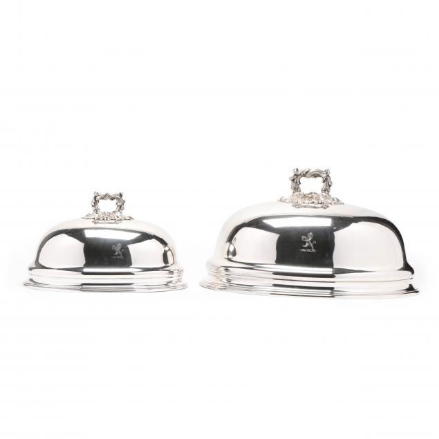 Each with ornate scrolling foliate handle and engraved lion crest to front, marked "R.T." to underside of handle.