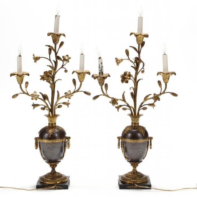 The Collection of Mr. Duggins and Mr. Dunn, High Point, North Carolina Some scattered gilding loss with minor light scratching and wear to base; some loss and wear to candle sleeves.