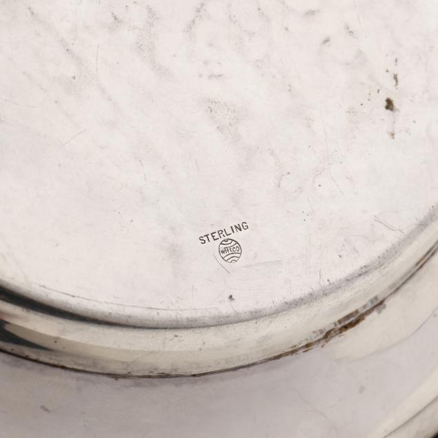 To include: a set of (7) by Lunt Silversmiths, model number 306, with "CSG" monogram to rim (5 7/8in.); (1) by Saart, monogrammed "J.S.G / March 1901" to center (6.25 in.); and (1) by Gorham, model number A5750, monogrammed "CSG" (6 3/8 in.).