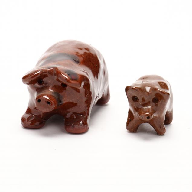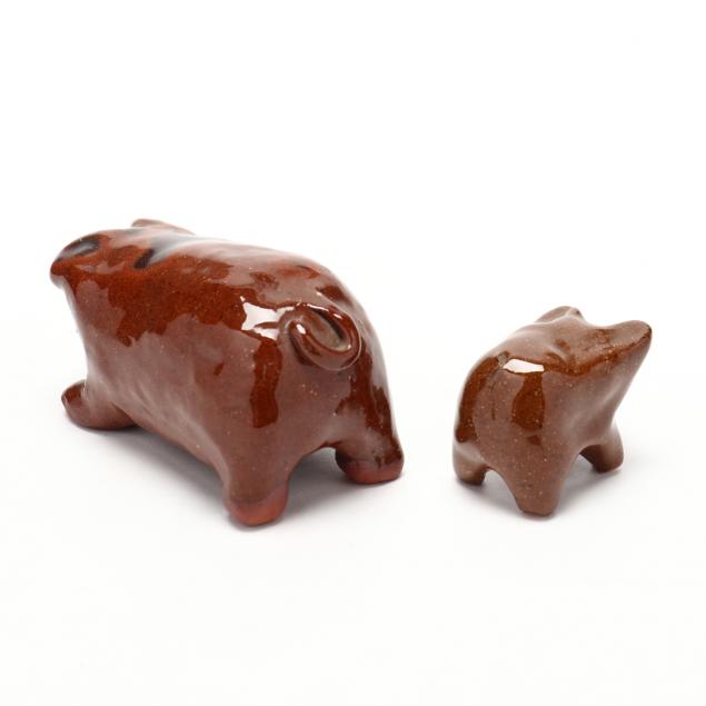 NC Folk Pottery, Two Molded Pigs, att. Billy Hussey