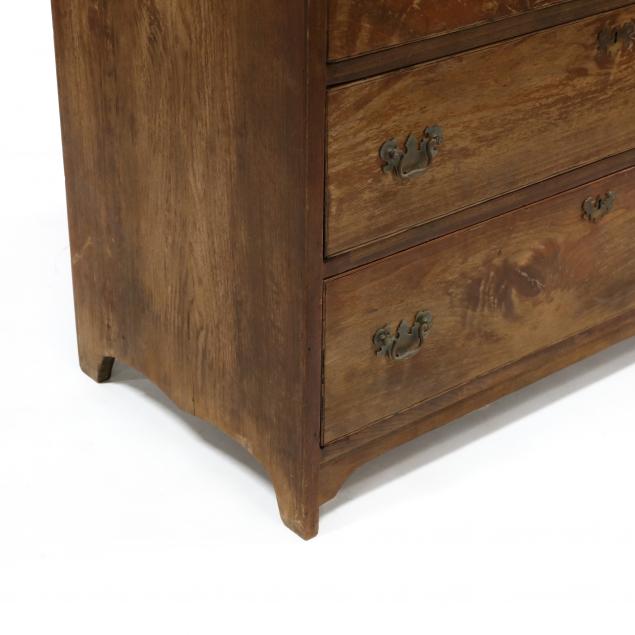 Likely Virginia, early 19th century, yellow pine secondary, top with applied trim, four graduated flush drawers with scratch bead, raised on straight bracket feet, verso with old paper label and inscription reading "From CA Lee 404 VA Cove? Harrisonburg, VA / Mrs. J. D? Lee 311 Dundee Ave, Richmond, VA."
