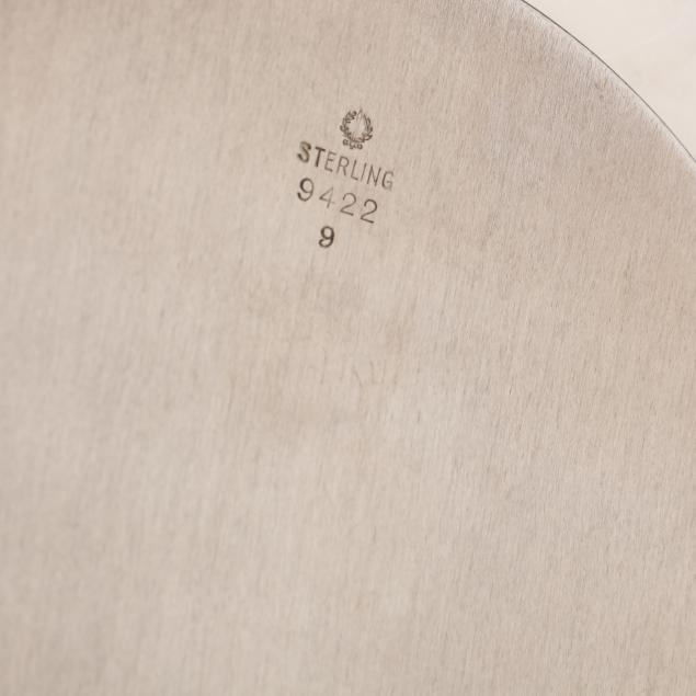 The first by Towle in the "Seville" pattern, model number 54211, monogrammed "EPW" (10 in. diameter); the second with mark of Watson, period monogram to well (9 in. diameter); the third with mark of Meriden Britannia Co., reticulated rim, period monogram "N" to well (8 5/8 in. diameter).