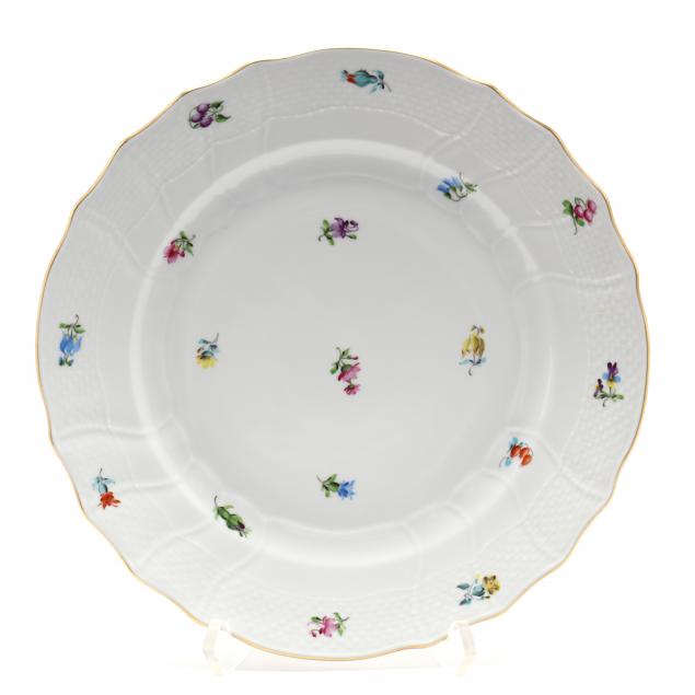 (48) pieces, hand-painted with a rooster and hen on a grassy field, to include: twelve plates (10.25 in.); twelve cups and twelve saucers; twelve plates (7.5 in.).